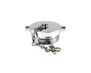 The Wilson & Cousins HF42-NST-CP is a 2 1/2" chrome-plated brass cap with chain, designed to cover and protect male NST fire hose threads. Durable and corrosion-resistant, it’s ideal for safeguarding hydrant outlets and fire department connections.