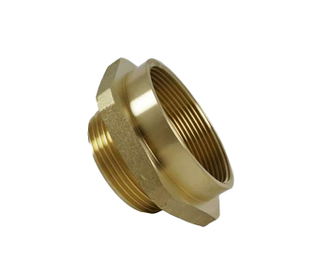 The Wilson & Cousins HF57-NYCORP-PB is a durable brass hex adapter used to convert 2 1/2" female NPT pipe thread to 2 1/2" male NYCorp hose thread. Its polished brass body provides a corrosion-resistant and visually clean finish, suitable for municipal and commercial fire protection systems requiring NYCorp standard hose connections.